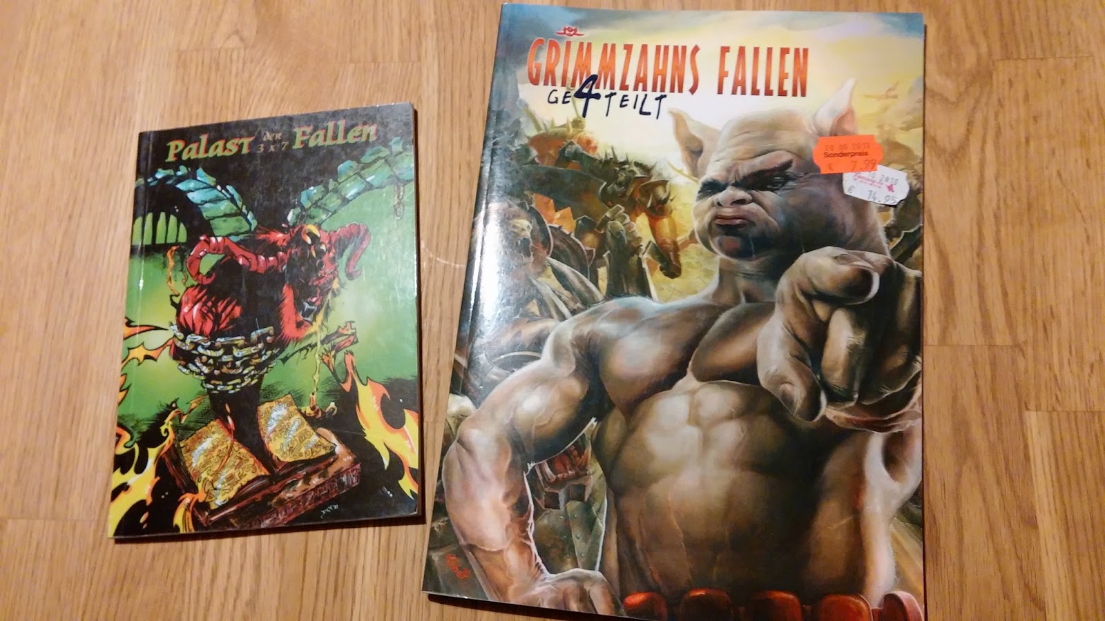 Als ich neulich für einen meiner Spieler bei „Fantasy-In“ in Hannover ein schönes Würfelset zum Geburtstag gekauft hab, sprang mir eine Kiste mit „altem Ramsch“ ins Auge. Darin waren einige alte Abenteuerbücher und zwei Bücher, die sich nur um das Thema Fallen drehen.