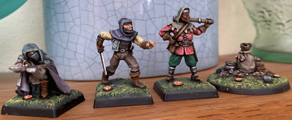 Man kann im Grunde sagen, je mehr „Basic“ eine Figur ist, desto höher ist die Wahrscheinlichkeit, dass sie wieder auf den Tisch kommt. Ein paar meiner „Schläger“ zum Beispiel halten da sicher den Rekord, die kann man als SL immer mal wieder gebrauchen, für Tavernenschlägereien, Hinterhalte in Seitengassen, Dorfaufstände, Wegelagerer und so weiter. Hierfür eignet sich die Townsfolk-Reihe von Reaper Miniatures zum Beispiel sehr gut.